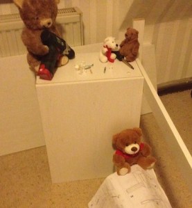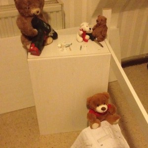 Wir Bärchen Teddyz, Vera, Henk, Koksi und ich stellen die Welt auf den Kopf. Wir haben viel Spaß, andere dann nicht so.